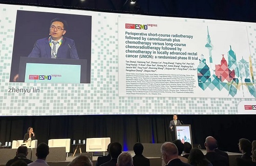 10月21日,asiagame医药创新药卡瑞利珠单抗(艾瑞卡®)的一项研究“新辅助短程放疗序贯卡瑞利珠单抗联合化疗对比长程放化疗序贯化疗治疗局部晚期直肠癌”随机对照Ⅲ期试验(UNION) 以优选口头报告的形式正式亮相。该研究由华中科技大学同济医学院附属协和医院张涛教授、陶凯雄教授担任主要研究者,华中科技大学同济医学院附属协和医院林振宇教授在马德里现场报告了该重磅研究的结果1,此项研究是全球首个评估短程放疗序贯免疫治疗联合化疗治疗局部晚期直肠癌的Ⅲ期研究,已达到主要终点病理完全缓解(pCR),有望为直肠癌患者的治疗提供新策略。